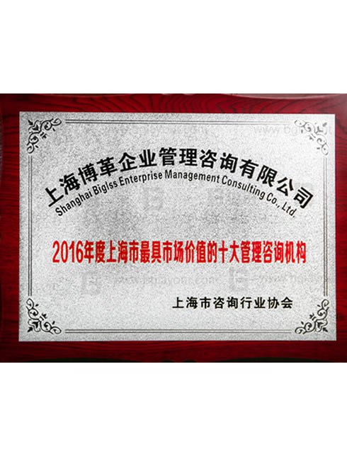 榮獲“上海市最具市場(chǎng)價(jià)值的十大管理咨詢機(jī)構(gòu)”