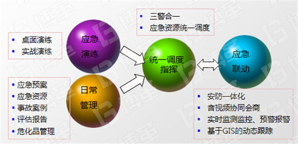 圍繞應急預案體系,引入先進技術手段和管理理念,搭建起有線調度、無線指揮、視頻全面監控、移動指揮、協同會商和決策支持等功能的“連得通、看得見、叫得應”應急指揮系統,打造煤化工行業示范項目