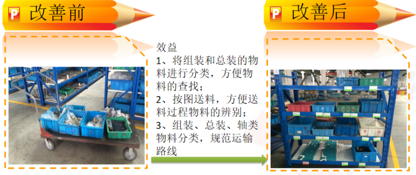 ●搬運浪費:物料運輸過程中,送料員用平板車,需多批次運輸,且需將物料搬運至地面;裝配員再將物料搬運至裝配區;