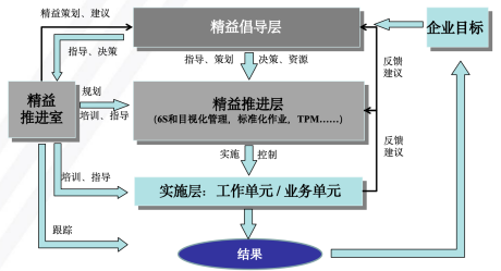 1)精益的有效開展需要建立對結果負責的精益組織,根據企業目標,精益推進工作室,協助精益倡導層,推進層和實施層,分解項目目標,制定項目計劃,共同達成項目目標。