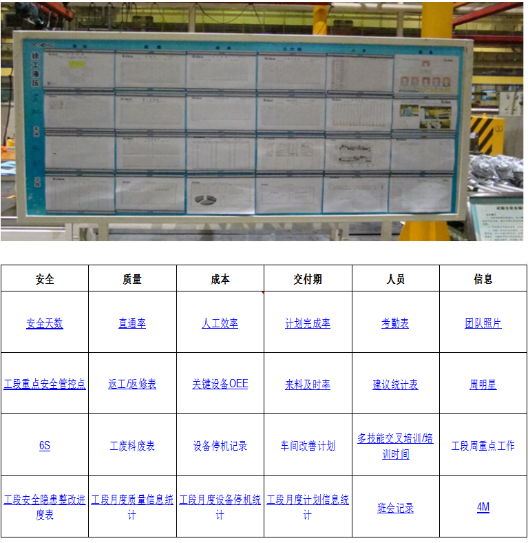 9)設置PQCDSM6個唯獨業績展板,實現可視化管理。