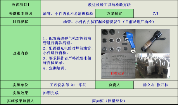 4)油管、小件檢驗,針對油管、小件內(nèi)孔不易清理檢驗問題,改進檢驗工具和檢驗方法,避免漏檢情況發(fā)生。