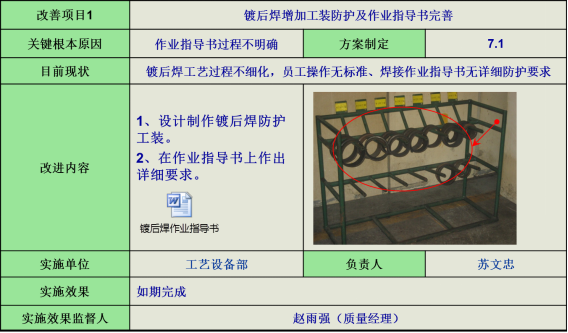 6)鍍后焊防護,針對鍍后焊作業(yè)指導(dǎo)書不明確問題,增加鍍后焊工裝防護,并完善作業(yè)指導(dǎo)書。