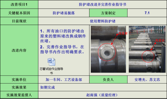 7)芯管試驗防護,針對防護堵易脫落問題,改進防護堵并完善作業(yè)指導(dǎo)書