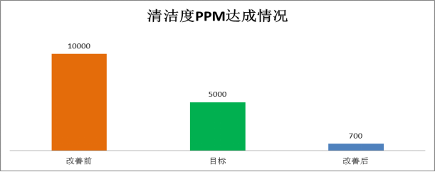 1.項目取得的效果:改善前:清潔度問題(焊后車鐵屑雜質(zhì)、芯管組焊焊瘤、鍍后焊焊瘤、芯管試驗油液污染、鍍后去堵鐵屑)不良率高達10000PPM,經(jīng)過項目改善,為700PPM,合計年收益約為24萬元,達成項目目標。