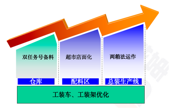 兩箱法導入:配送量得以統一,配送過程避免盲目性、隨意性,利于現場整理、整頓;兩箱法能直觀顯示物料缺失信息,便于信息化管理。
