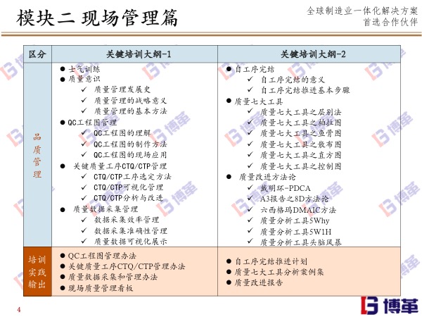歡迎您訪問博革咨詢官網!博革咨詢是中國首家整合精益生產/六西格瑪/流程再造的咨詢公司,專注于提供 精益生產、6S現場管理TPM設備管理、精益工廠布局、專業目視化、精益供應鏈精益研發、六西格瑪管理、智能制造等綜合性問題解決方案并負責落地實施。