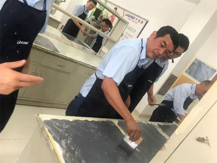 經銷事業部團隊還進行了專業的產品培訓,培訓的項目包括2019年大寶漆在經銷渠道上市的金級7+1墻面漆、雙離子抗甲醛全效兒童漆、水性調合漆、進口的全球涂料系列產品和樓貝進口藝術涂料等產品特性和涂裝操作。通過樣板體驗產品的手感、動手體驗產品的施工操作,使大家對公司的新品性能有了更客觀、正確的認識。增強了銷售人員對公司產品的信心,從而更好的將新品推廣到市場!