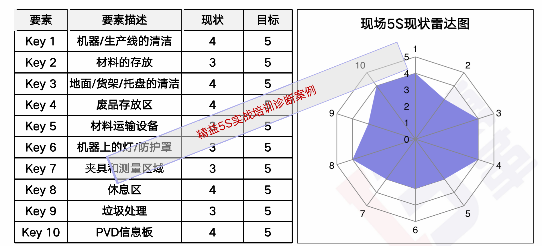 培訓(xùn)顧問在培訓(xùn)前,對現(xiàn)場5S問題點進行診斷取景,使培訓(xùn)講解時更具有針對性,以解決現(xiàn)場的突出問題。